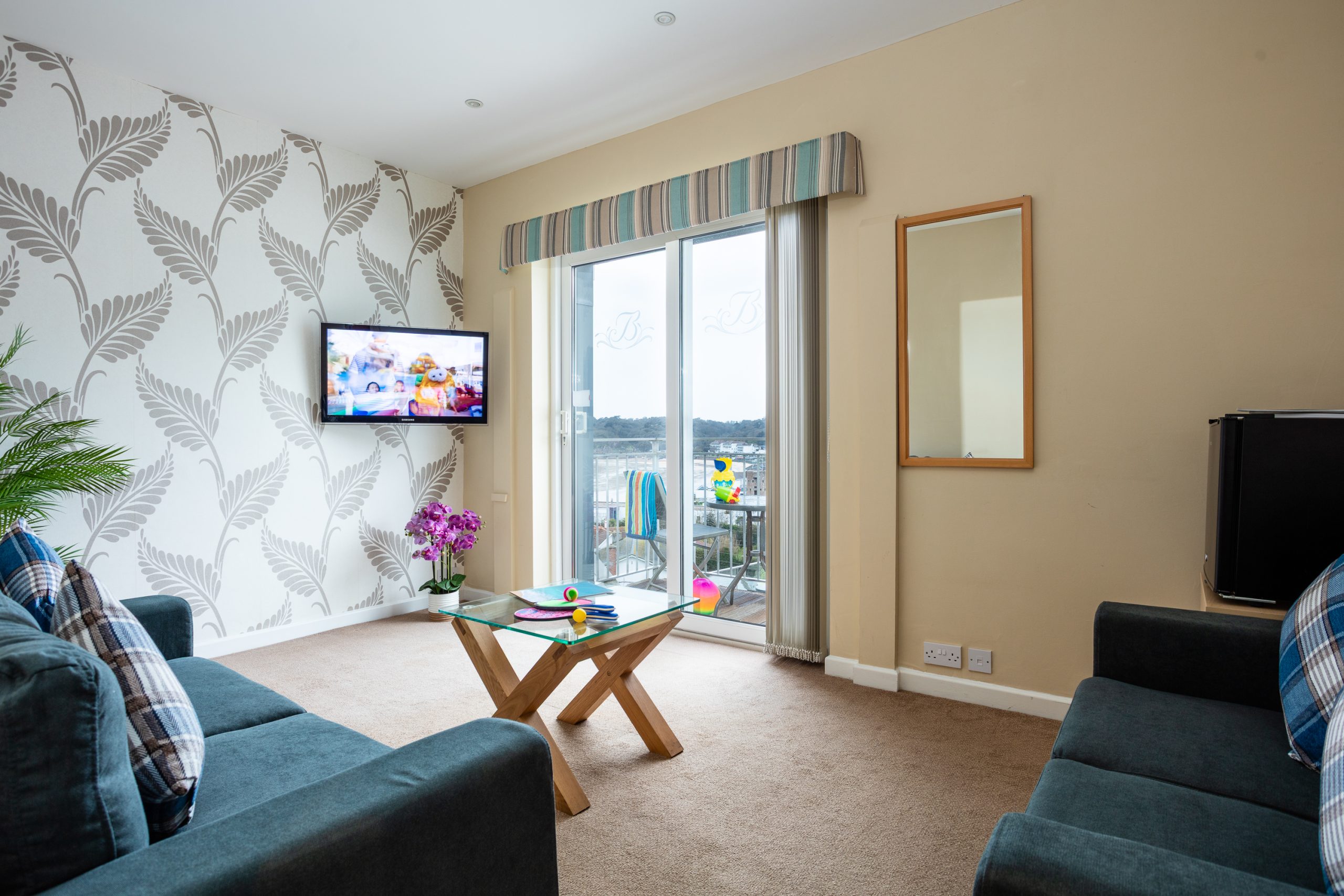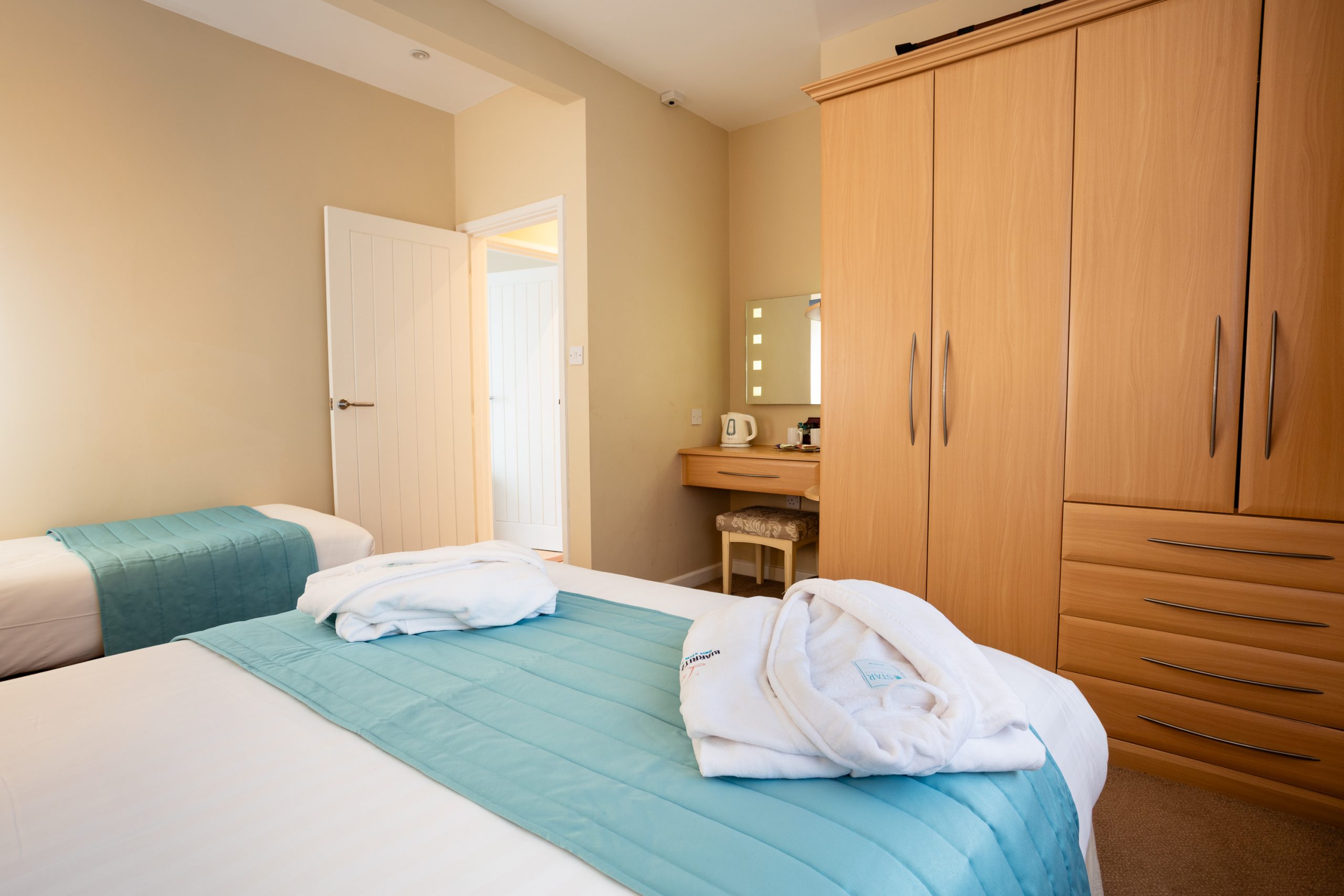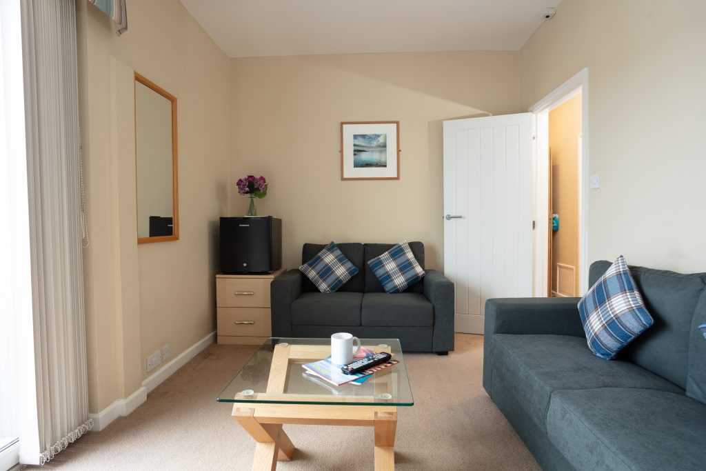Premium Family Room with one double bed and one single bed, ideal for a comfortable family stay. Enjoy a private balcony with stunning sea views along with your very own living room, with an en-suite bathroom featuring a shower over bath. The room also includes a flat-screen Smart TV, tea and coffee making facilities, complimentary Wi-Fi, ironing facilities, refrigerator, hairdryer and personal slippers for added comfort. Each room also features an en-suite bathroom with complimentary toiletries and soft, fluffy towels.