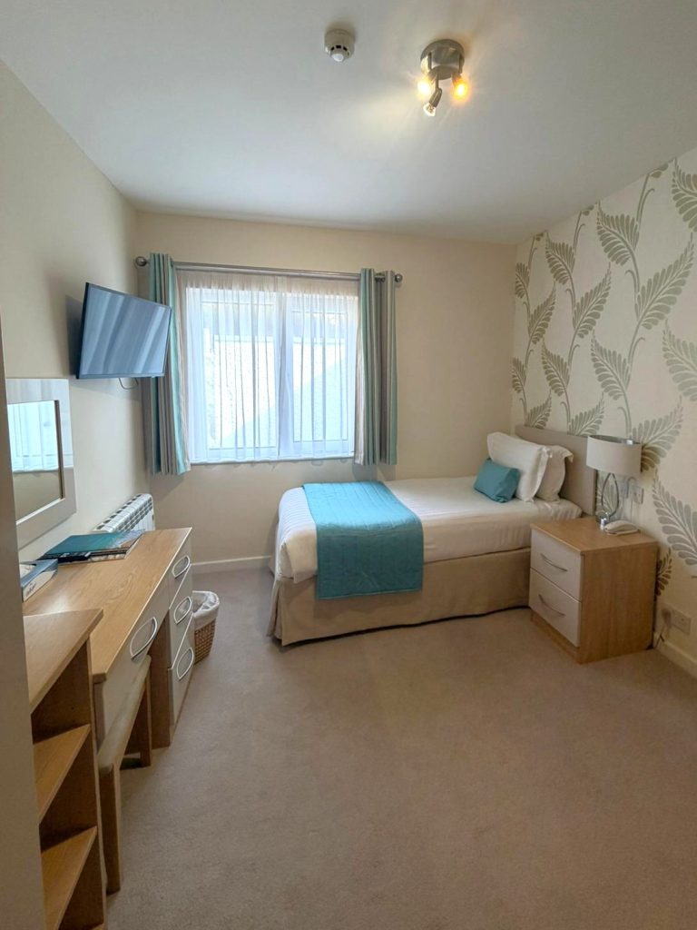 A compact room with a single bed. This room also has a flat screen TV, tea & coffee making facilities, free Wi-Fi and hairdryer. Rooms are en-suite, with essential toiletries.