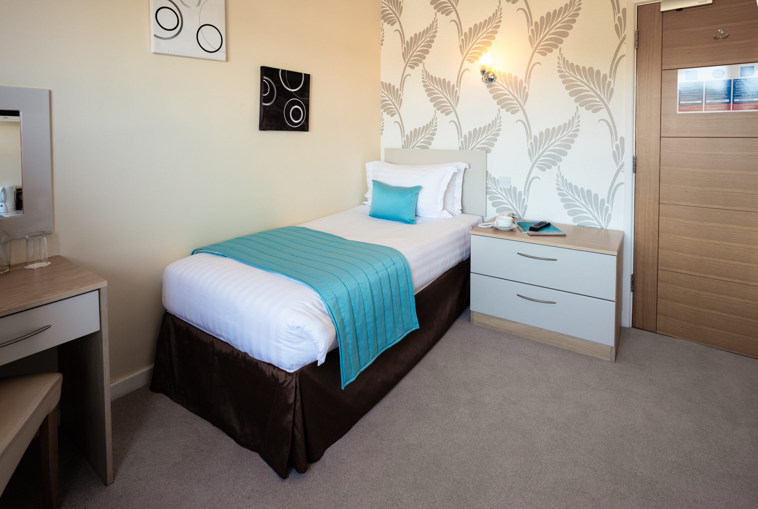 A compact room with a single bed. This room also has a flat screen Smart TV, tea & coffee making facilities, free Wi-Fi and a hairdryer. Rooms are en-suite, with essential toiletries.